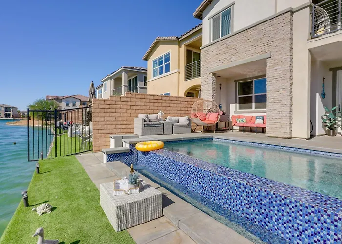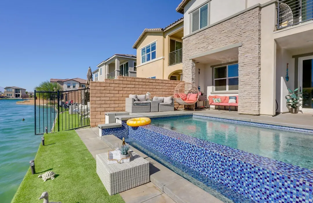 2 Mi To Fantasy Springs Casino Lakefront Retreat! Indio villa offers proximity to nearby tourist spots, such as the Indian Spotlight 29 Casino, situated nearly 25 minutes' walk away.